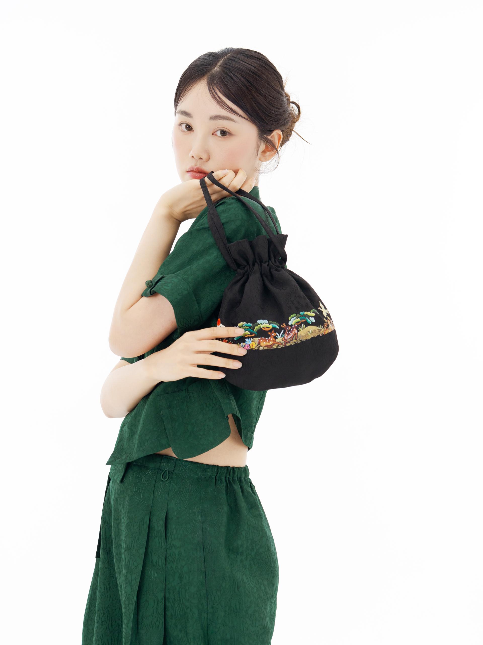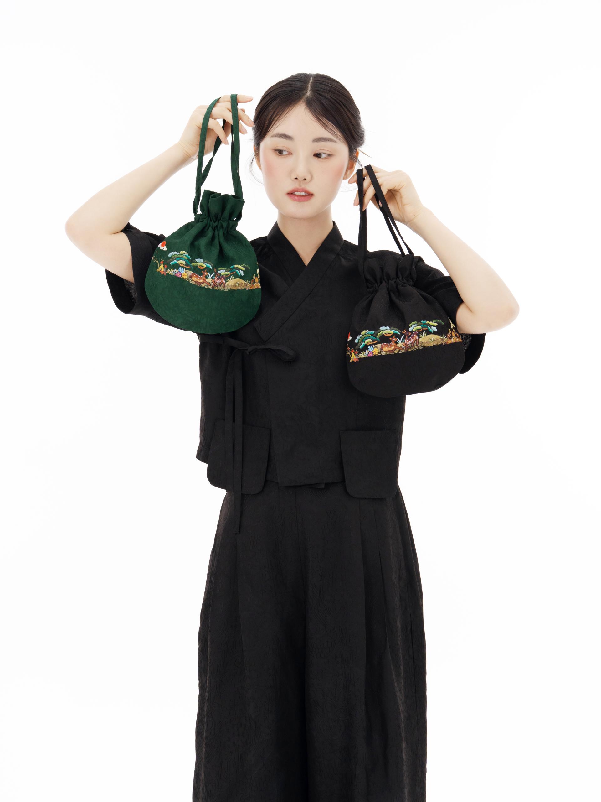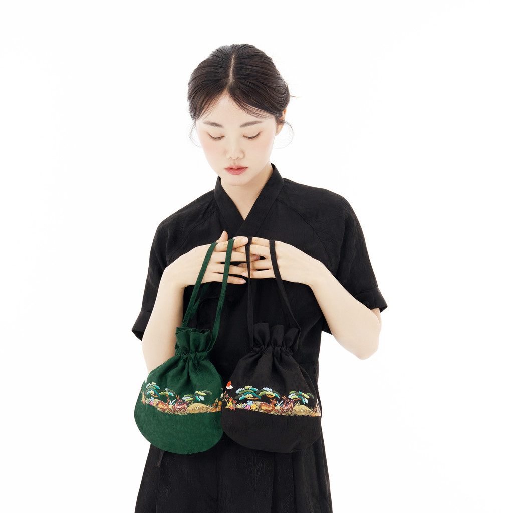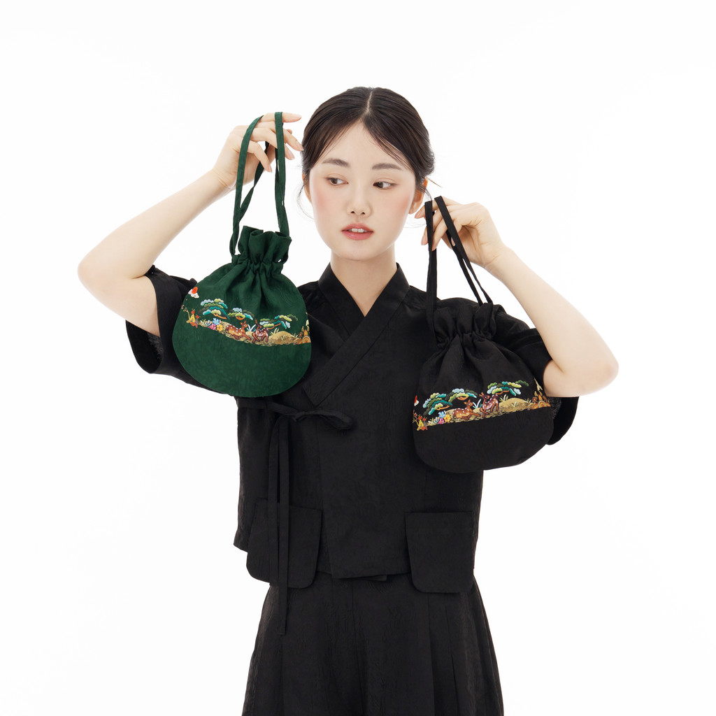 가볍지만 존재감 확실한 십장생 복주머니는 인견셋업과도 세트처럼 어울리지만 기본 셔츠, 원피스에도 너무 잘 어울려요.