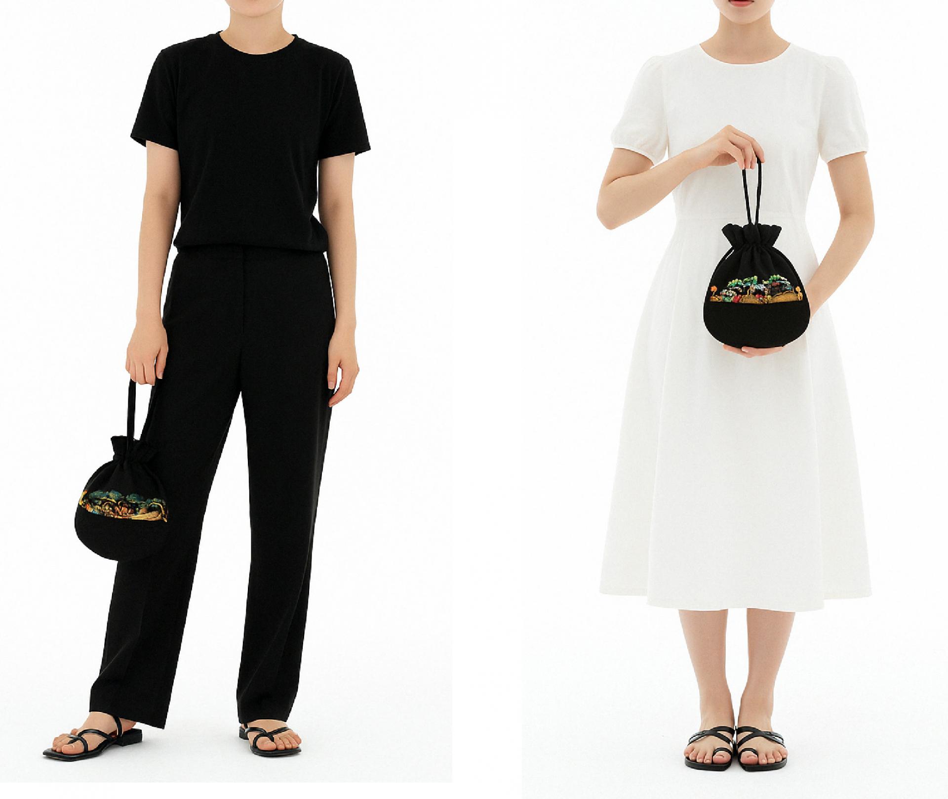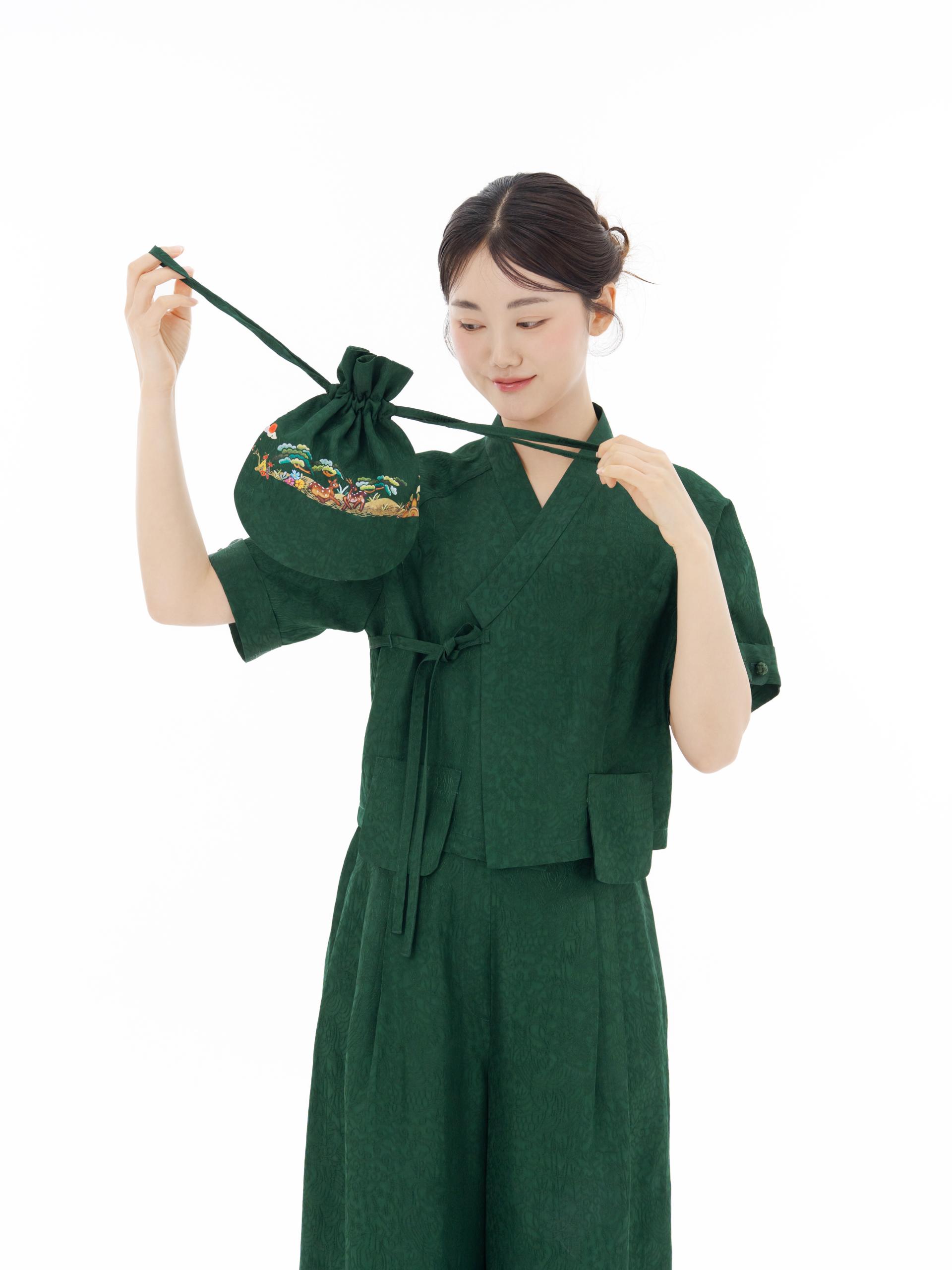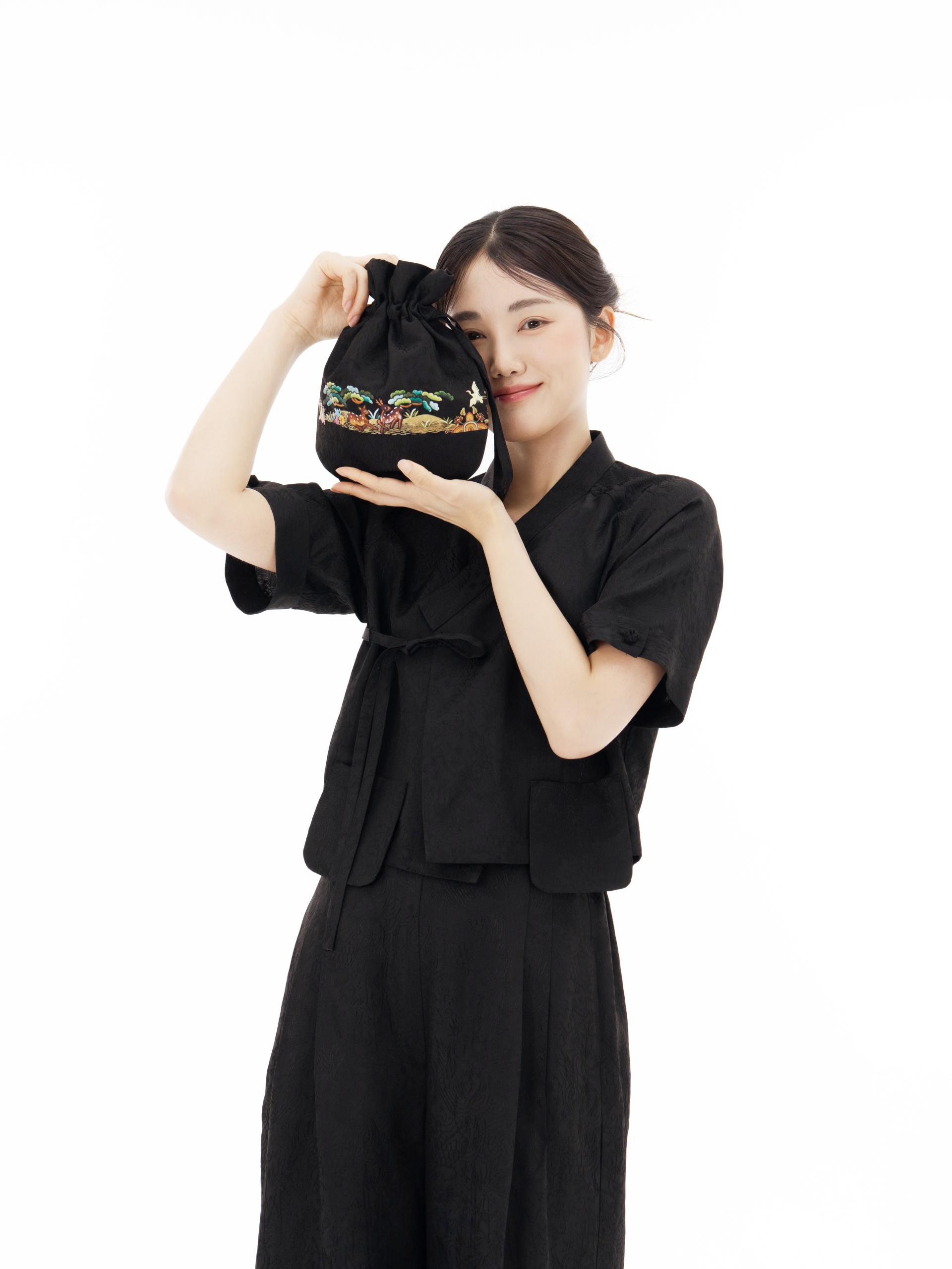 가볍지만 존재감 확실한 십장생 복주머니는 인견셋업과도 세트처럼 어울리지만 기본 셔츠, 원피스에도 너무 잘 어울려요.