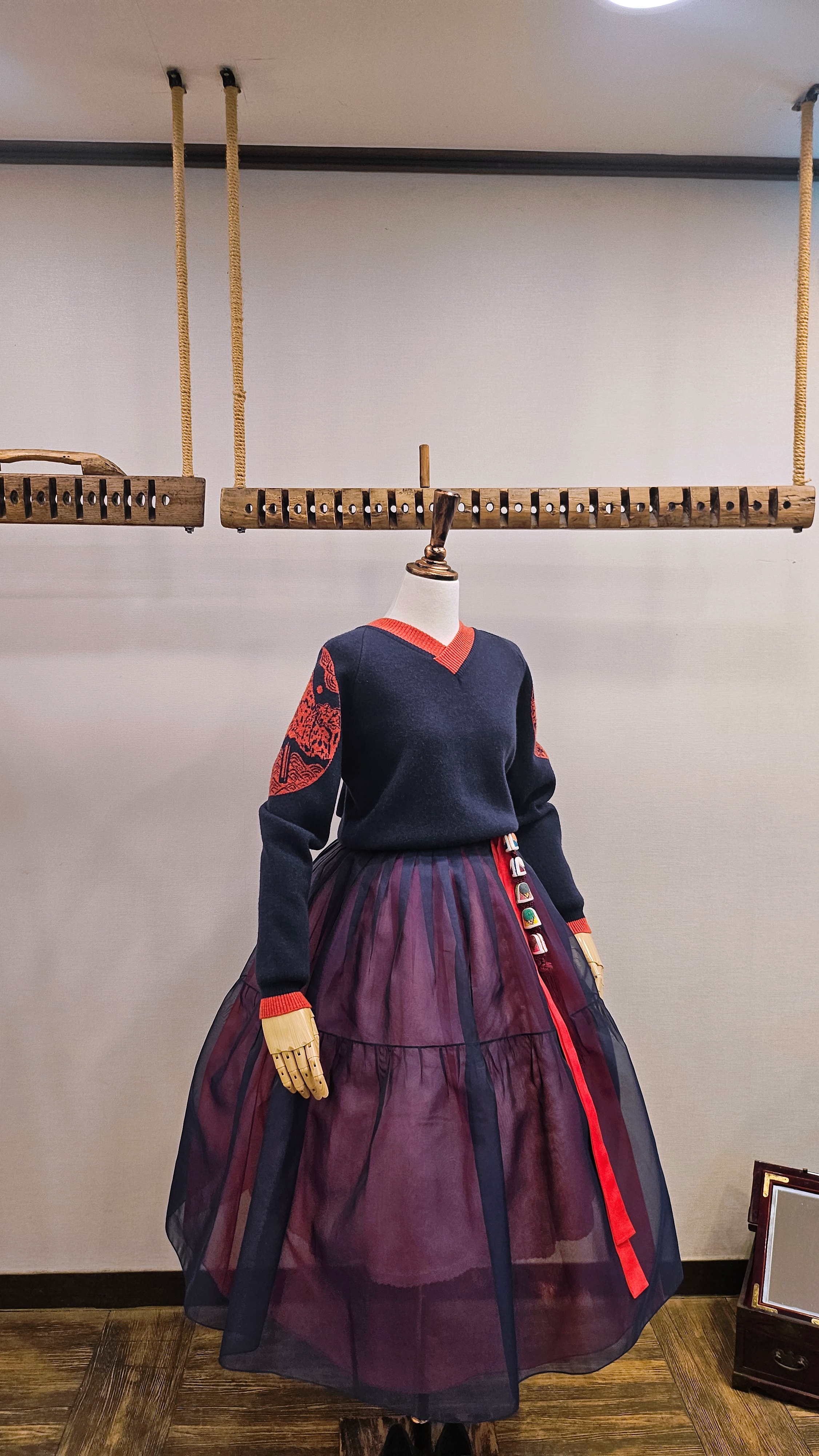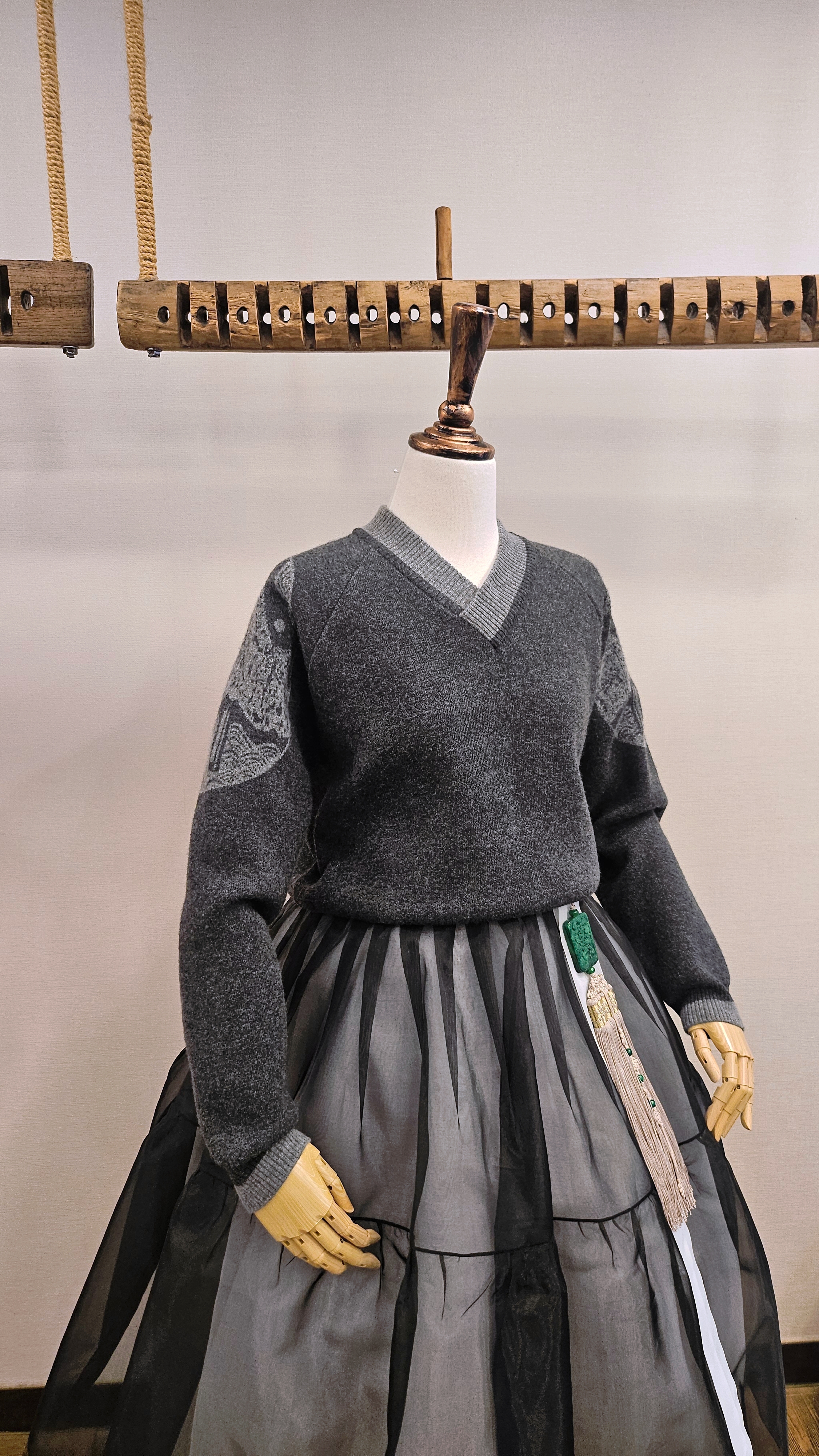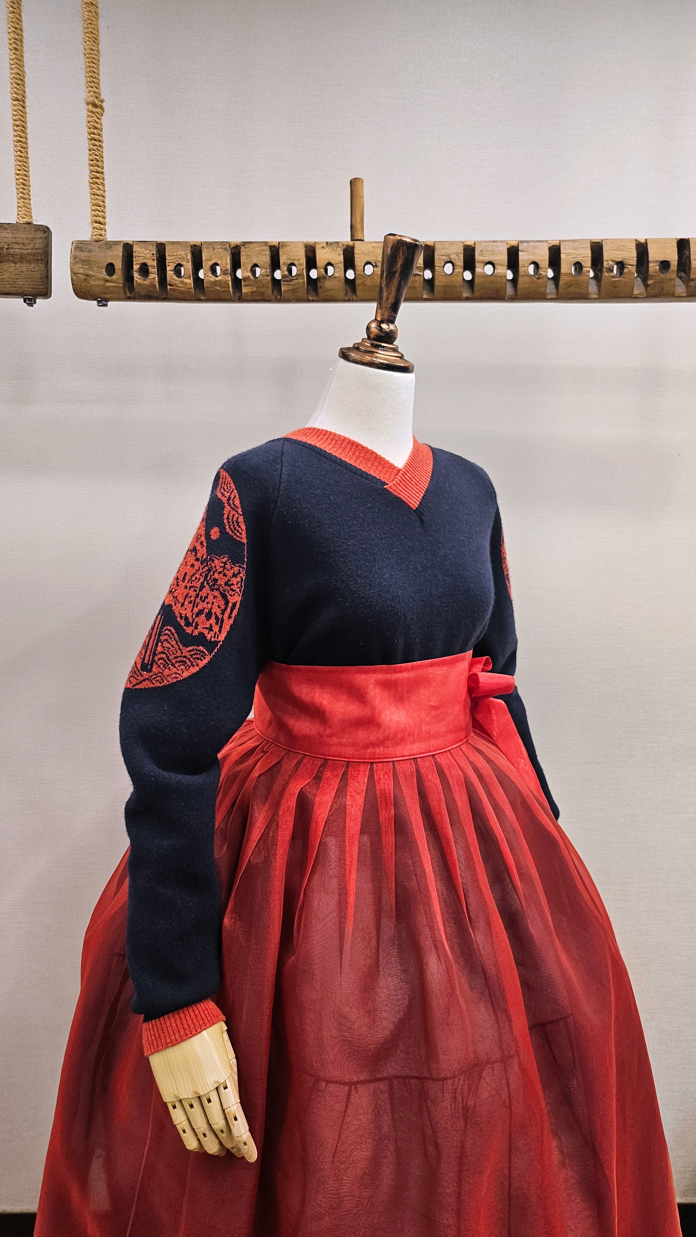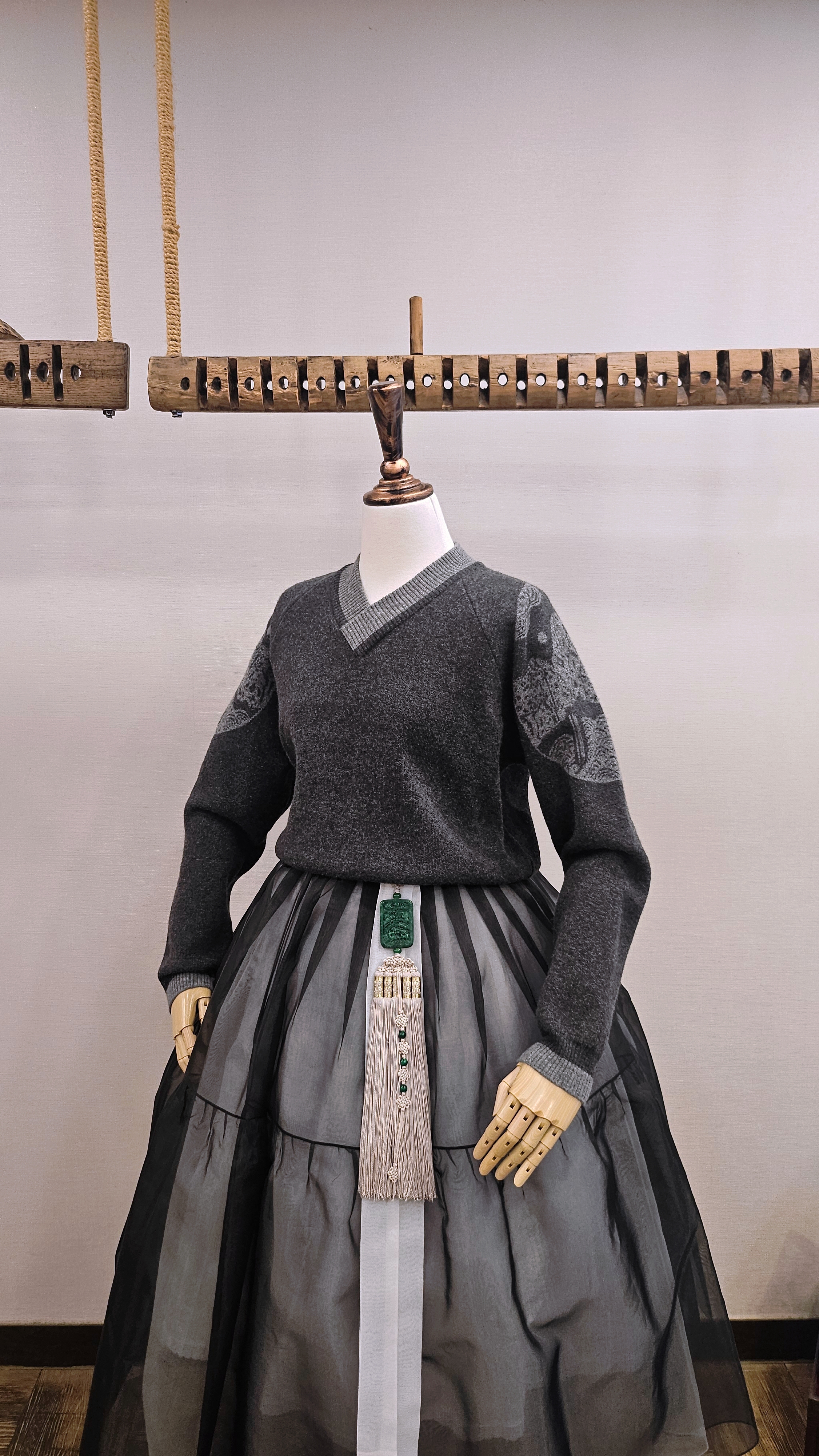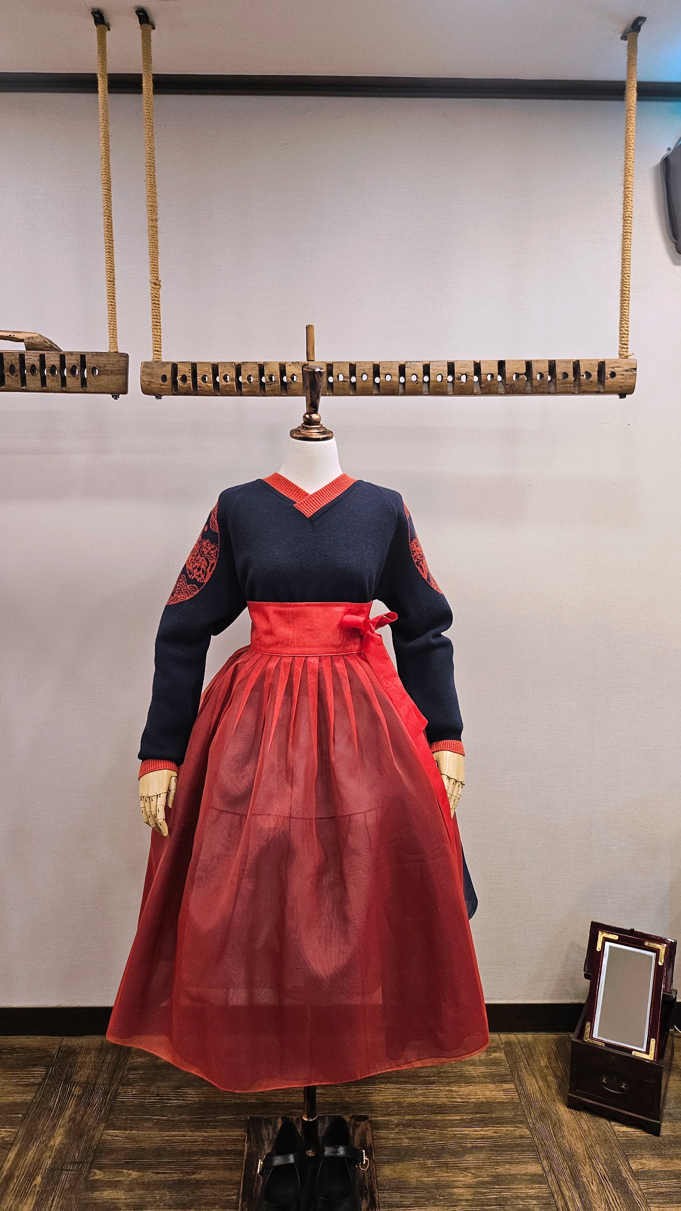 단정한 한복치마 외주름을 잡은 반대쪽 베이지컬러 스커트