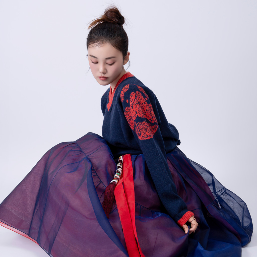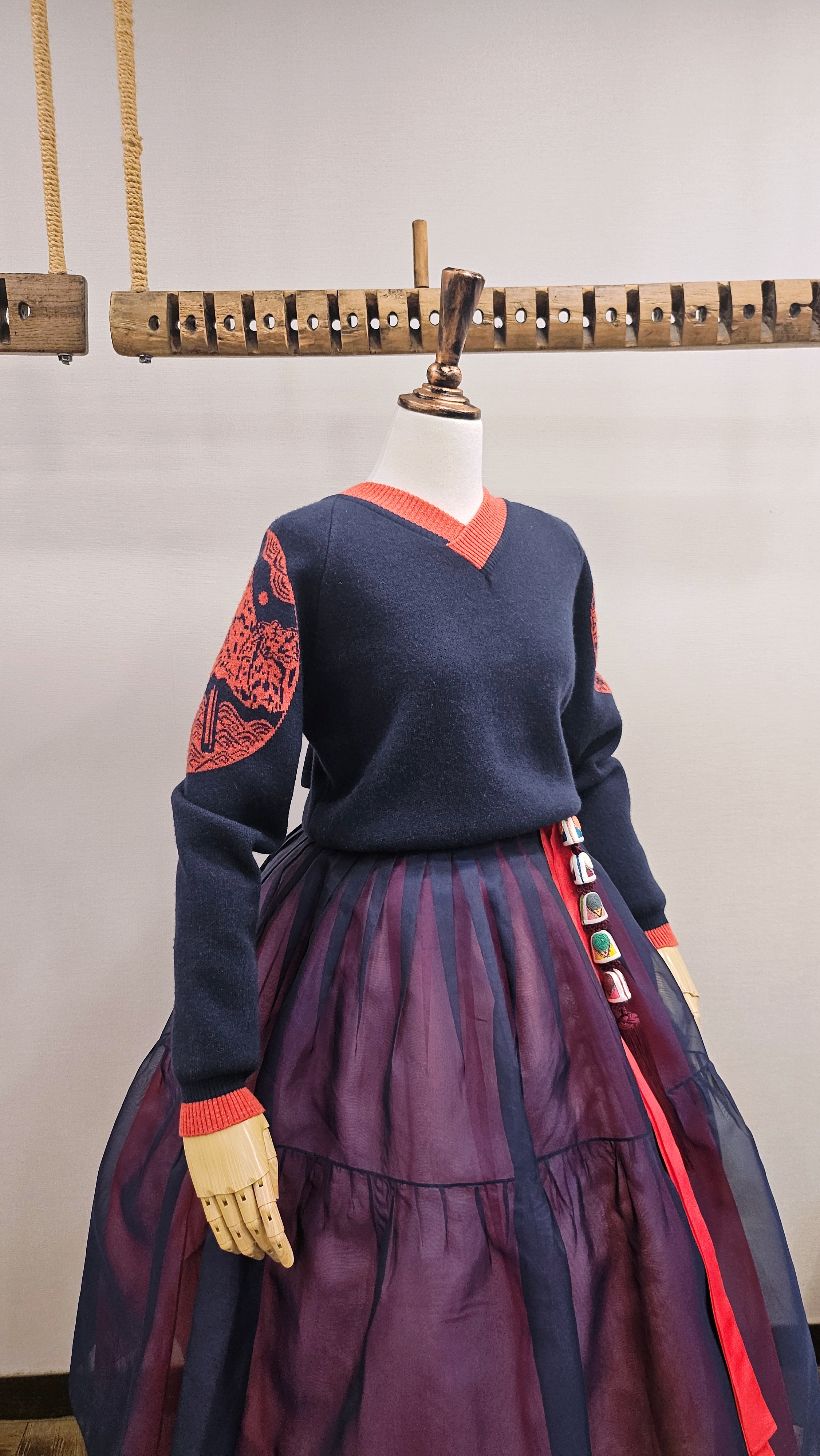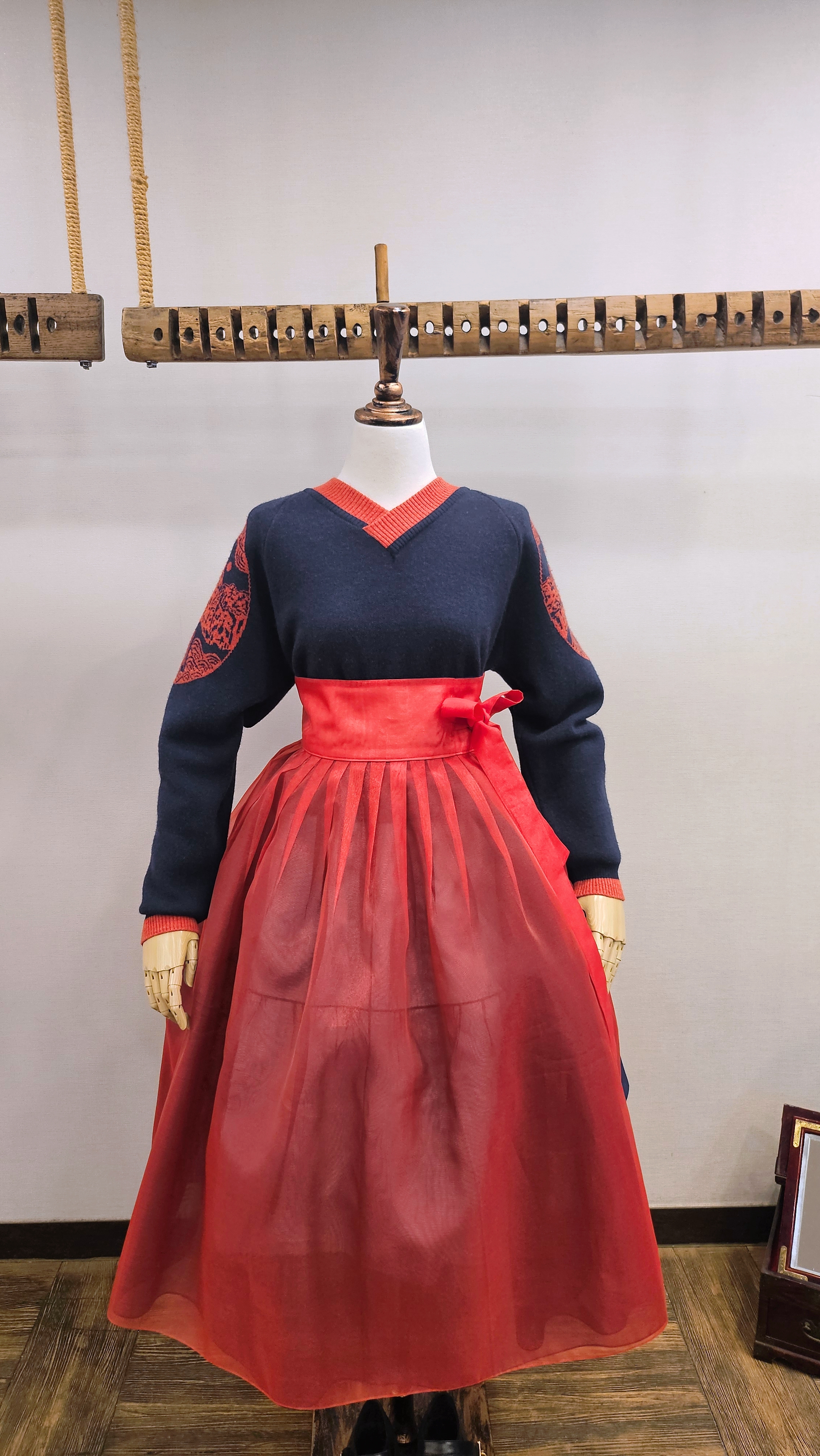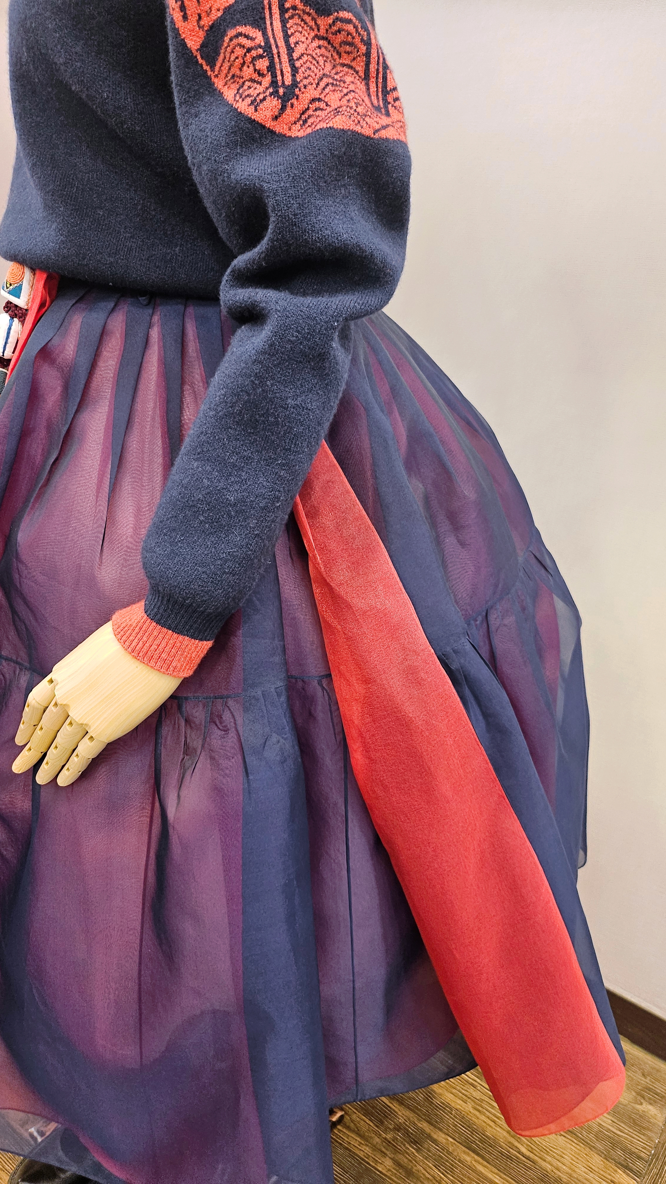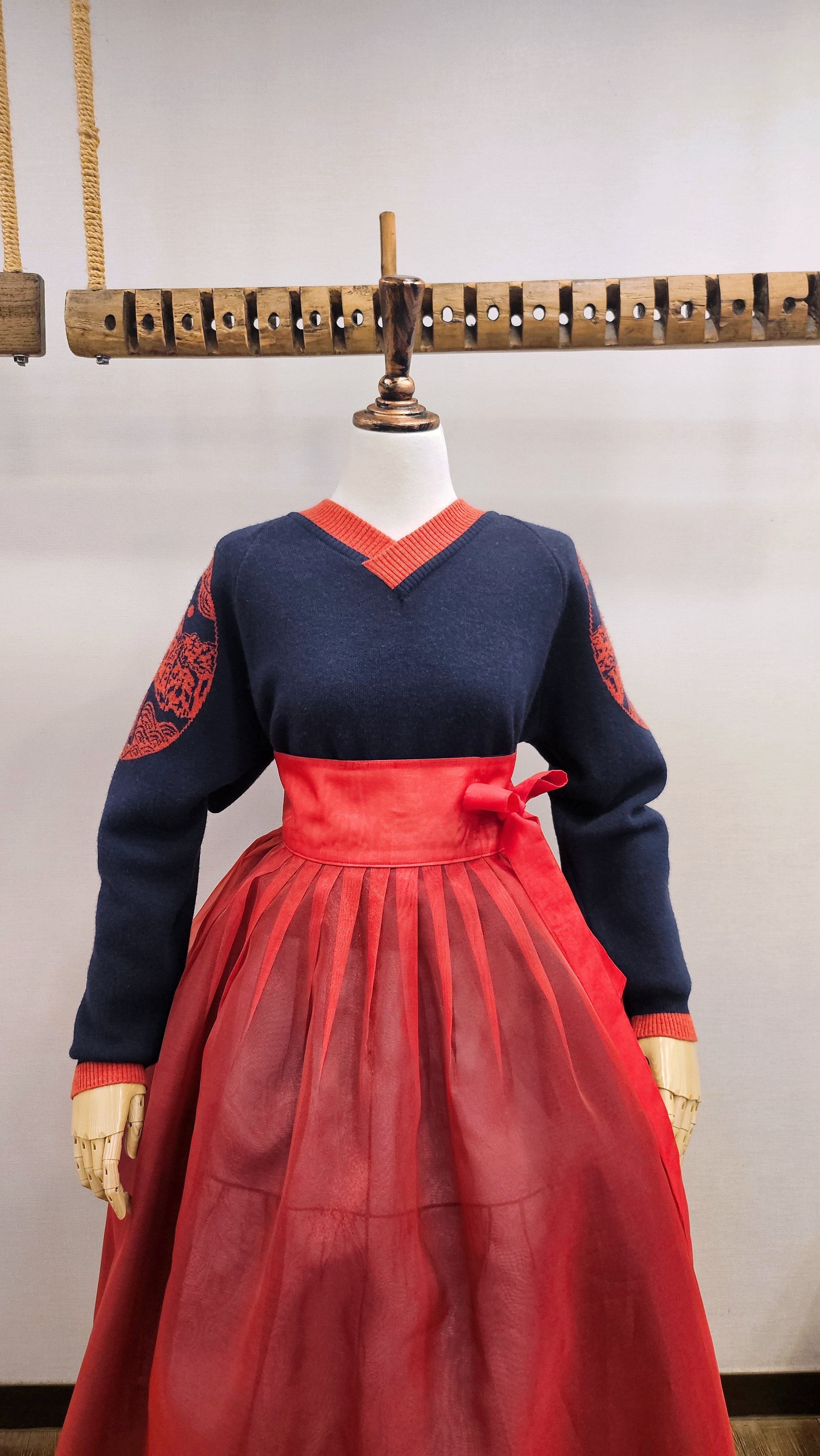 단정한 한복치마 외주름을 잡은 반대쪽 베이지컬러 스커트