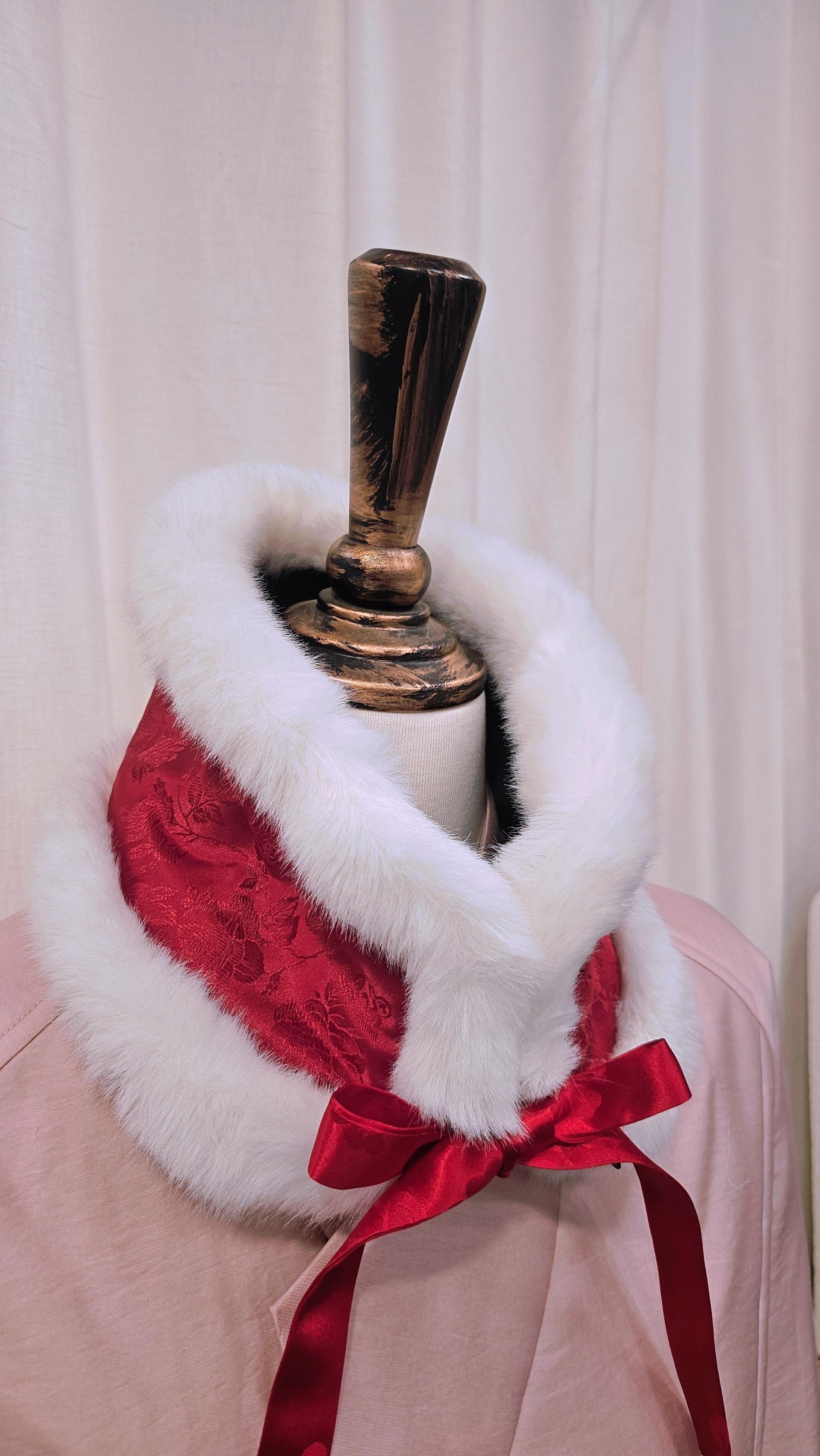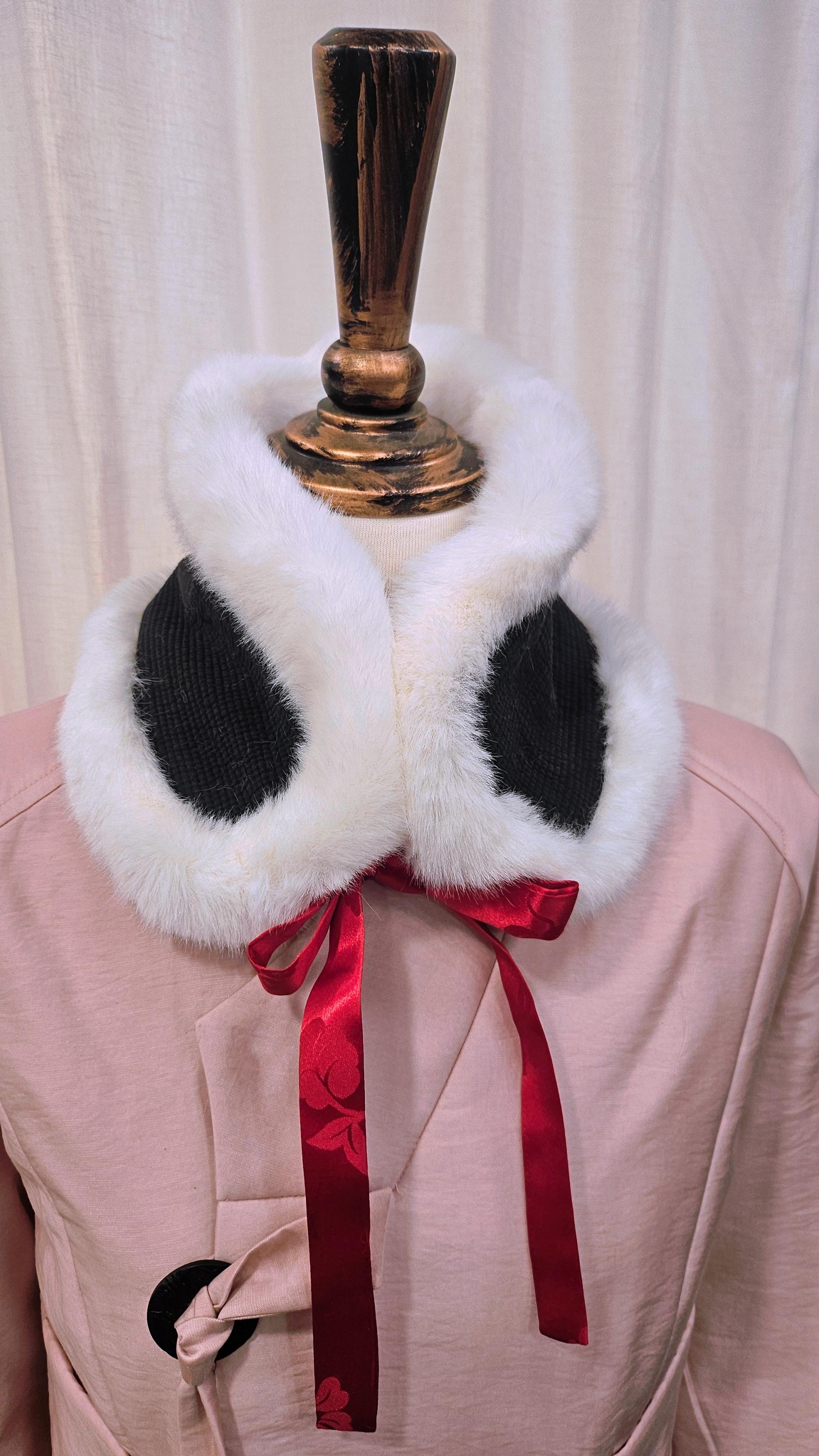 블랙 누빔 원단에 하얀 밍크트리밍을
