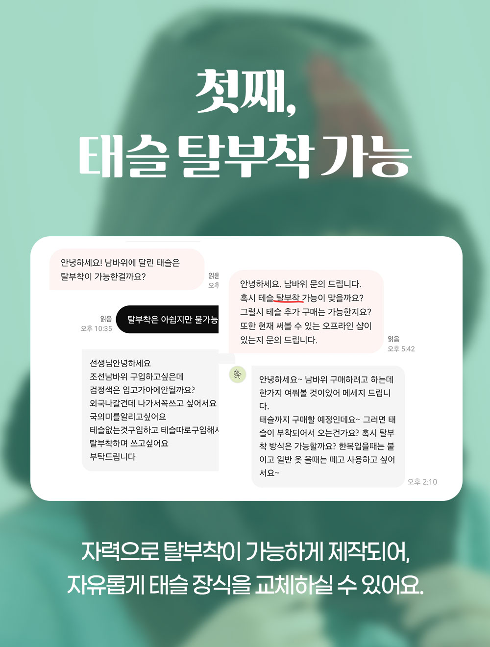 - 상품 수령 후 7일 이내에 고객센터를 통해 교환/반품을 요청해 주시면 택배 접수와 교환/반품 접수를 해드립니다.